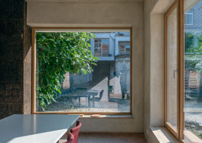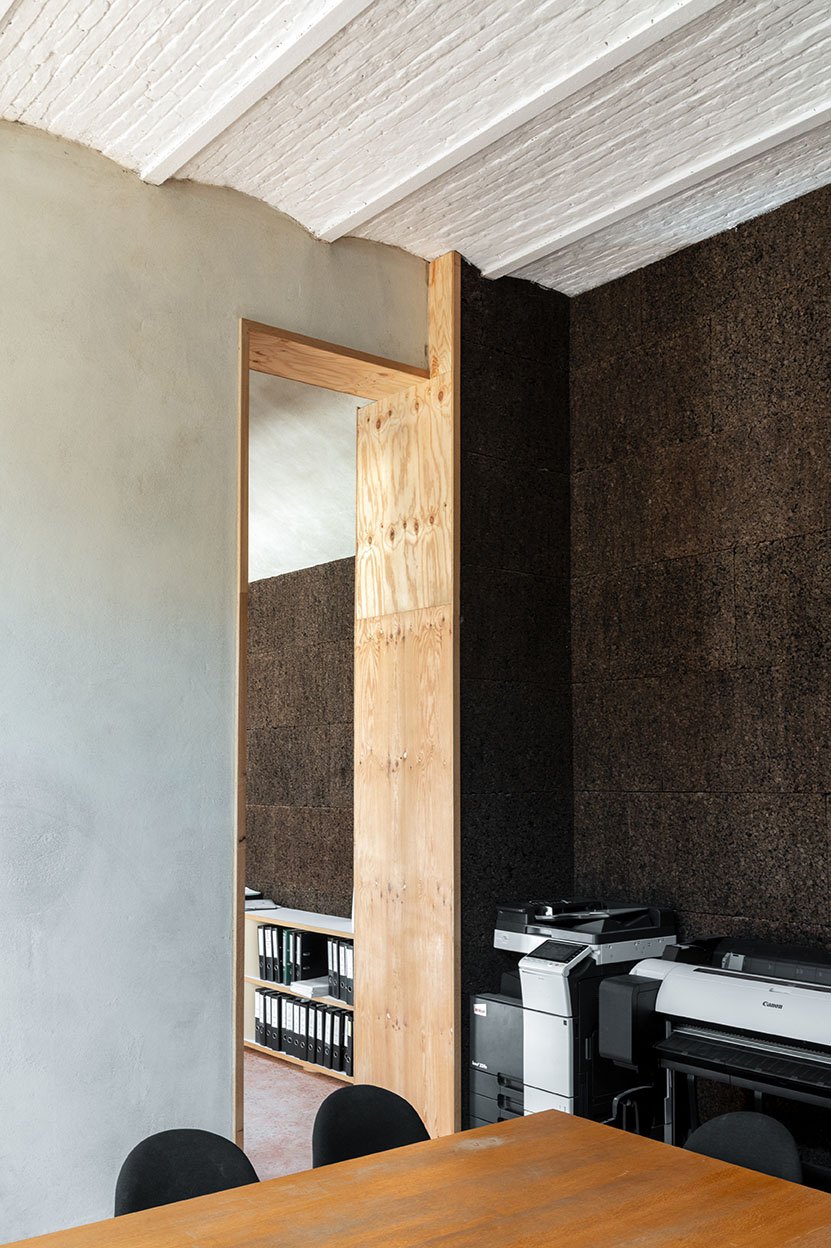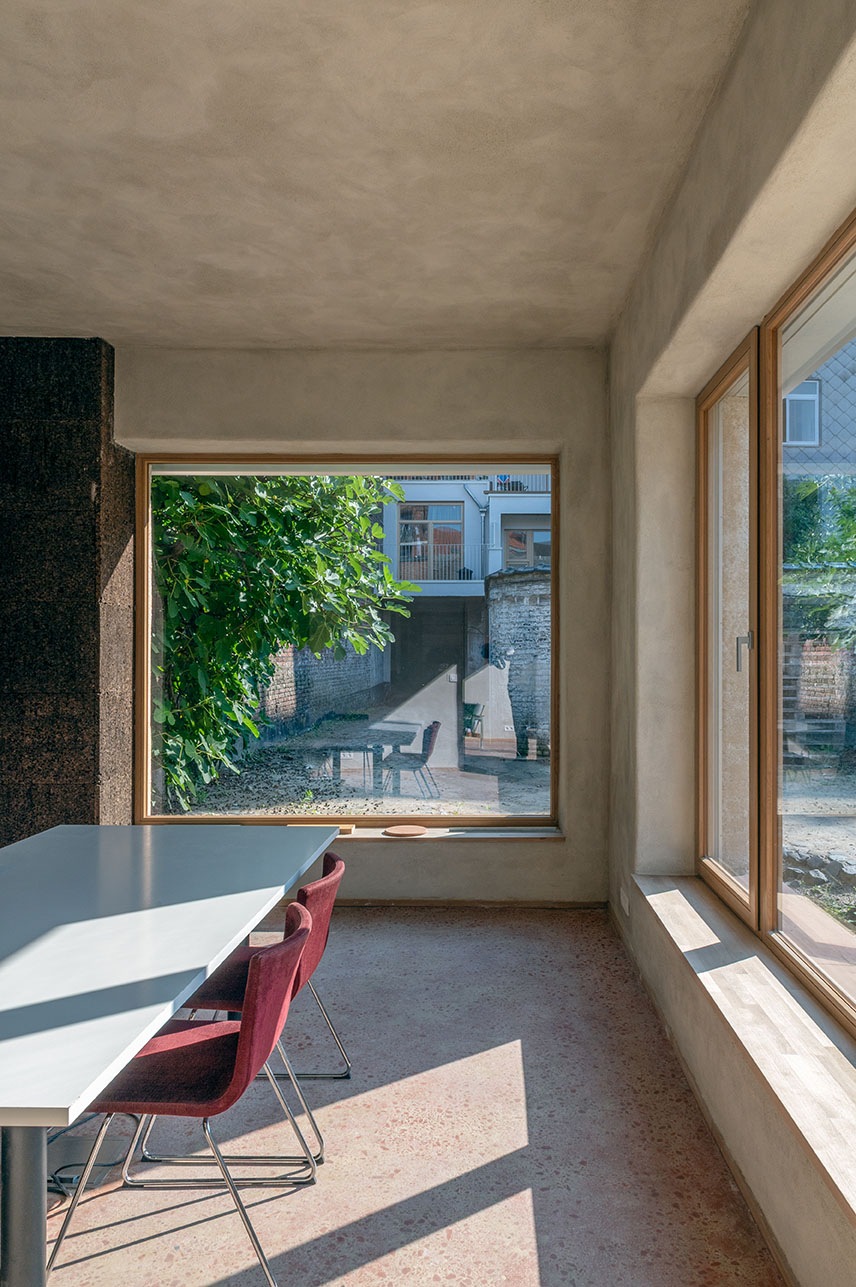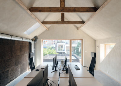 GROW se distingue par sa démarche écologique et circulaire, avec une utilisation raisonnée de matériaux naturels et bio-sourcés, ainsi que le réemploi de tuiles, briques et pavés sur site. L’isolation en béton de chanvre, les enduits à l’argile et le liège contribuent à la fois au confort thermique et acoustique, tout en favorisant la qualité de l’air intérieur. Une des grandes particularités du projet est la façade en chaux-chanvre apparente, réalisé à travers un chantier participatif. (Encadré par Degré 47).