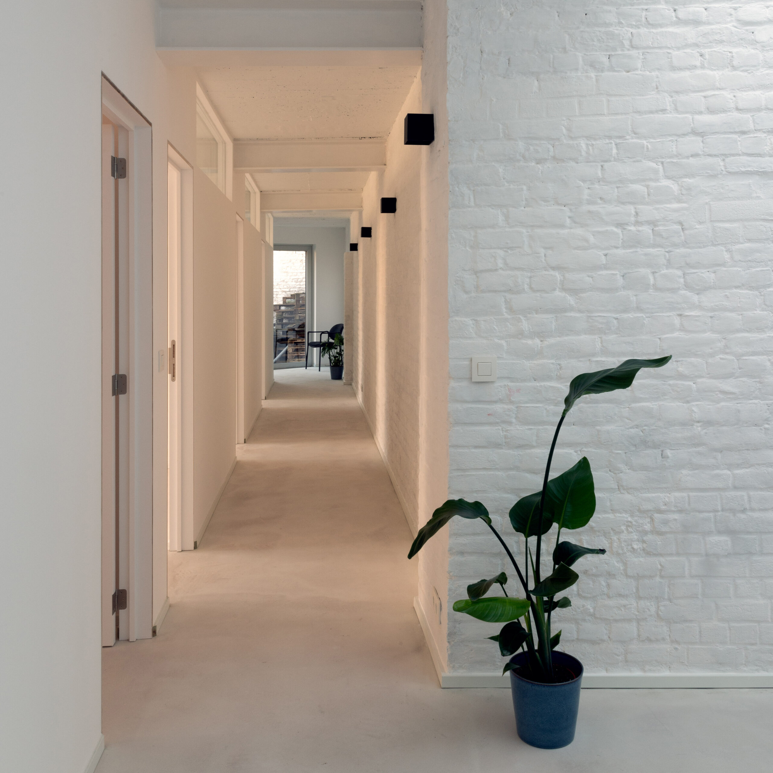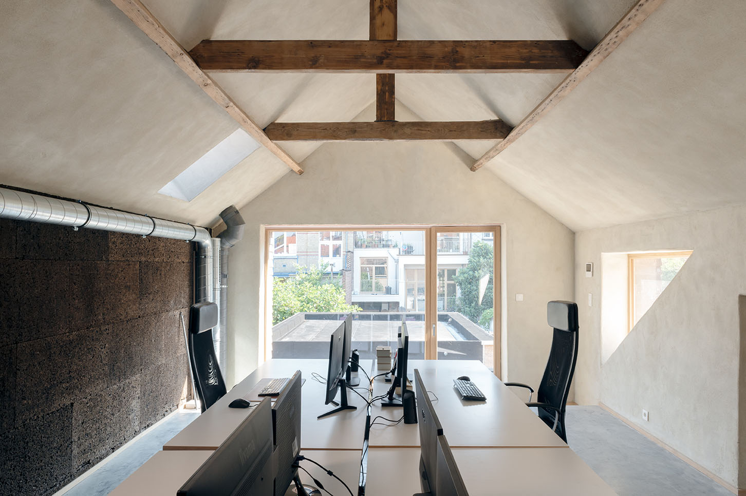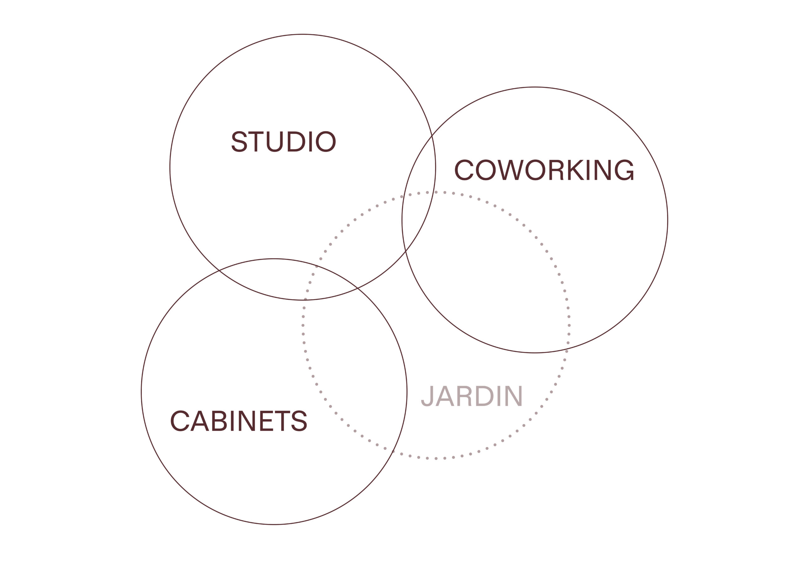 Quatre cabinets d’environ 13 m² constituent le dernier pôle du site. Ils sont disposés autour du jardin partagé, offrant une vue apaisante sur la végétation durant les sessions.